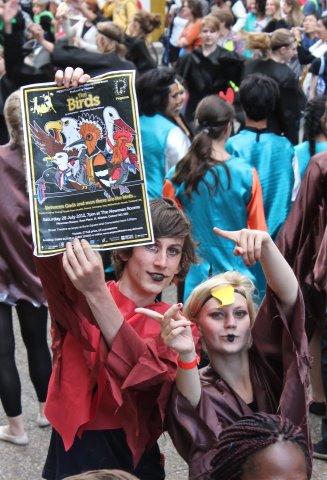 From 20-28 July, the Mesh International Youth Arts Festival happened again and I ran the writing group. Great young team of writers who literally buzzed with energy and ideas. I also got to see some great plays and dance performances from around the world. The best bit for me was the street theatre and parade – each of the nine countries involved had their own special bird/ bird costumes and song. So, the Oxford group had Rockin’ Robin, the Leiden group had McCartney’s Blackbird, the Thai group had a music piece connected to their bird which was a pheasant, the Croatians had storks, the Russians had the phoenix (music was Stravinsky’s Firebird). We sang and danced (sanced, in fact) through the streets of Oxford for two hours – terrific party atmosphere. I felt 20 again. A great privilege to be part of it all.