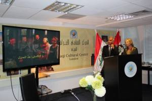 On Saturday 9 August Adnan and I went in the afternoon to the Iraqi Cultural Centre in Shepherd’s Bush with Patricia de Mayo who plays oud with our poetry readings. We had been invited by the Director of the Centre, Dr Abdulrahman Dheyab, to give a performance of our poetry to an invited, mainly Iraqi, audience. The Centre is quietly luxurious with richly coloured carpets and Mesopotamian artefacts. There were posters for ‘Baghdad, City of Culture’ on the walls. The staff were very kind and brought us teas and coffees with little biscuits and snacks as we rehearsed