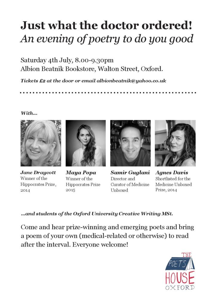 Here is the poster for the evening of poetry that will do you good. Please see below for full biographies of the poets. See you there!