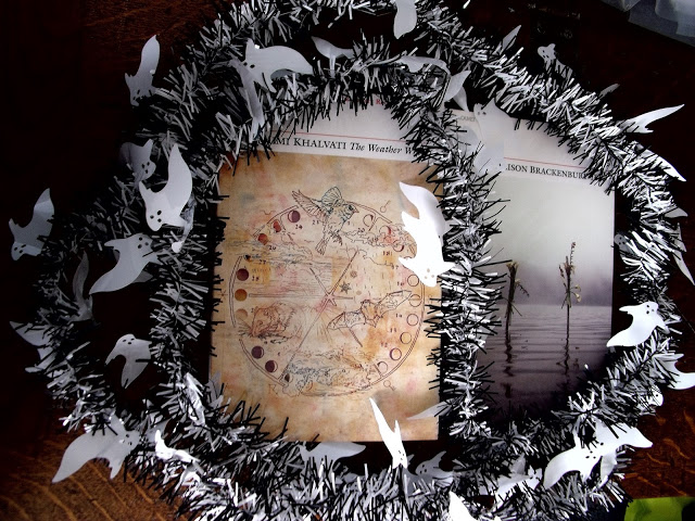With a wary eye on dangling bats, I read my own selection, while draped with two metres of what a leading supermarket described as ‘Terrifying Tinsel’. Its tiny white ghosts cannot be blamed for the horrified gaze with which I turn to all cameras. But the ghosts and I greatly enjoyed all the contributions to the evening’s open mic: poems of wild boar, opulent moons and imagined, thoughtful dialogues between the living and the dead.