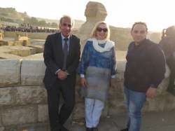 Bahaa, who teaches at Ain Shams University in Cairo (his PhD was on the poetry of Seamus Heaney and he has written extensively on English Literature including on James Joyce and Sylvia Plath) arranged for me and Adnan al-Sayegh to go to the pyramids at Giza. This was especially exciting as I have a photo of my father on a camel in front of the Sphinx with the pyramids in the background. It was taken in August 1918 when my father, aged 20, was presumably on his way home from India, from where he had been invalided out of the Mesopotamian Campaign of the First World War in 1917. I showed the photo and read several poems from Taking Mesopotamia (Oxford Poets/ Carcanet, 2014) including my poem, ‘Father’, at our reading on Sunday 3 February – much to the audience’s delight.